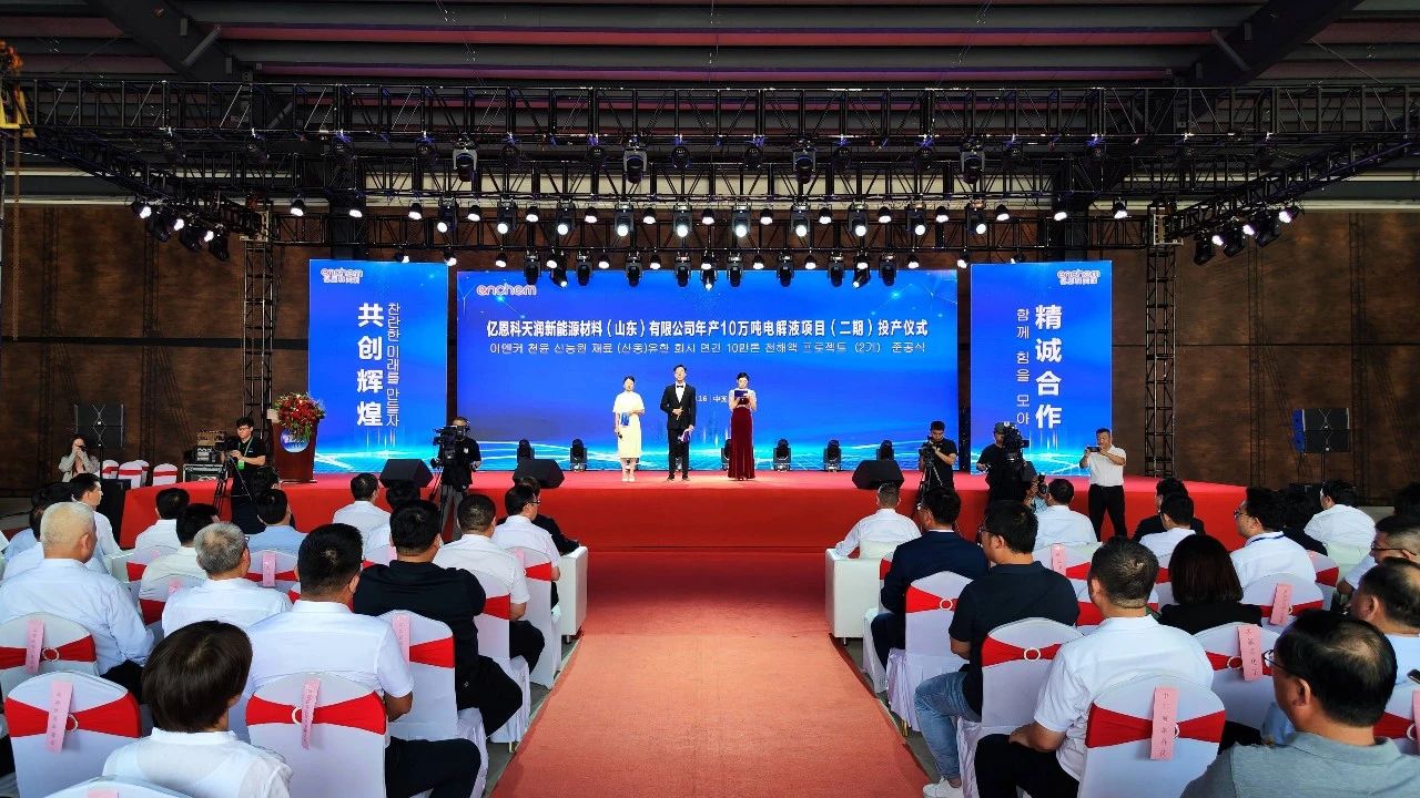棗莊市副市長左文在致辭中對項目的投產表示祝賀。他指出,億恩科集團作為韓國最大、全球知名的鋰離子電池電解液和電解液添加劑制造商,專業從事鋰離子電池電解液研發、生產、銷售于一體的現代化國家級高新技術企業。今天年產10萬噸的二期電解液項目順利投產,必將為棗莊壯大鋰電產業鏈、培育千億級鋰電產業集群提供有力支撐。