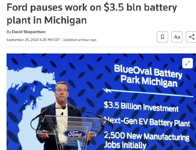 這一決定正值美國汽車工人大罷工沖擊整個行業之際,福特在與美國汽車工人聯合會(UAW)的合同談判中一再提高條件,但未能達成協議。美國總統拜登周二將訪問密歇根州,加入美國汽車工人聯合會的糾察線,支持罷工工人。