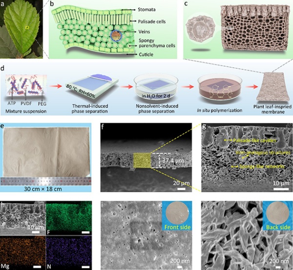 圖1.?仿樹葉結構凹凸棒石/聚合物復合隔膜的制備及表征