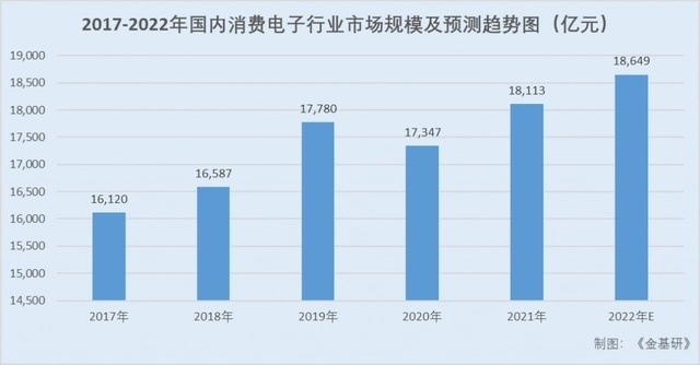 據(jù)Statista和中商產(chǎn)業(yè)研究院整理數(shù)據(jù),2017年國內(nèi)消費(fèi)電子市場(chǎng)規(guī)模為16,120億元,2021年增至18,113億元,市場(chǎng)規(guī)模龐大。隨著國內(nèi)疫情形勢(shì)好轉(zhuǎn)以及市場(chǎng)需求的恢復(fù),預(yù)計(jì)2022年國內(nèi)消費(fèi)電子市場(chǎng)規(guī)模將達(dá)18,649億元,同比增長3%。