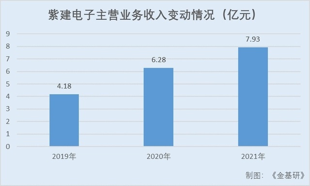 據(jù)東方財(cái)富Choice數(shù)據(jù),2019-2021年,紫建電子的營業(yè)收入分別為4.21億元、6.39億元、7.99億元。