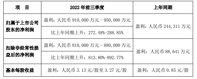 10月17日晚間,比亞迪公告,預計三季度歸母凈利潤為55億元至59億元,同比增長333.6%至365.11%;扣非歸母凈利潤為50.7億元至57.7億元,同比大增879.37%至1014.57%。比亞迪預計,前三季度歸母凈利潤預計為91億元至95億元,同比增長272%至289%;扣非歸母凈利潤預計為81億元至88億元,同比大增813.8%至892.77%。