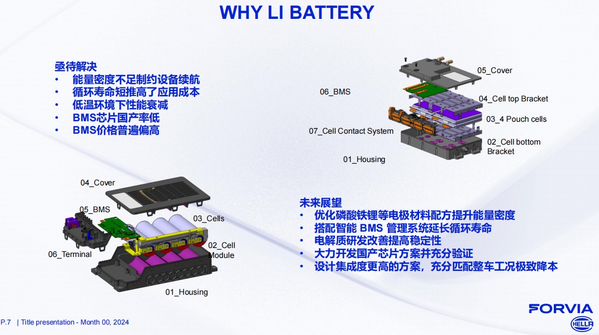 海拉電子通過與OEM和電池制造商的合作,率先在行業內實現了12V起動/輔助電池的鋰電化。上海海拉電子有限公司南京研發中心能源部系統高級主管劉燦分享了鉛改鋰的趨勢及面臨的挑戰。其認為可以從以下幾方面重點推進解決目前面臨的難題: