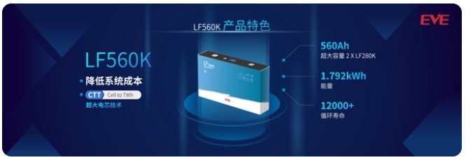 當前,儲能行業(yè)快速發(fā)展,站在GWh上升至TWh的時間拐點,疊加對儲能經濟性的迫切需求,儲能電池需具備高安全性和高經濟性。億緯鋰能從市場、客戶和產品技術出發(fā),LF560K電池基于CTT技術,可降低系統總成本,具有560Ah超大容量,單只電池可儲存1.792kWh能量,循環(huán)壽命超過12000次,滿足儲能市場高經濟性的需求。