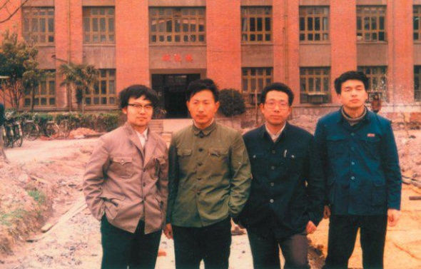 1986年李永舫(左二)在復(fù)旦大學(xué)躍進(jìn)樓前與研究生同學(xué)胡震東、戚小鶴和沈陽(yáng)合影