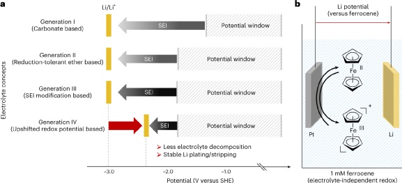Fig.3|ReversibleLiplating/strippingenabledbyelectrodepotentialupshiftinaweaklycoordinatingsolvent,DMM.