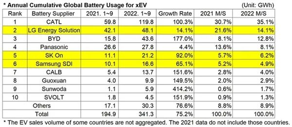 據(jù)SNE Research分析,三家韓國電池公司的增長勢頭主要受搭載各公司電池的電動車車型銷售的拉動。受現(xiàn)代ionic 5和起亞EV6等銷量持續(xù)增加影響,并隨著現(xiàn)代ionic 6新上市,SK-On進(jìn)一步擴(kuò)大了增長勢頭。奧迪E-Tron、寶馬iX、寶馬i4、菲亞特500等的持續(xù)銷售增加帶動了三星SDI的增長。LG新能源則得益于特斯拉的Model 3、Model Y的高人氣以及大眾ID.4、福特Mustang Mach-E的銷售利好。