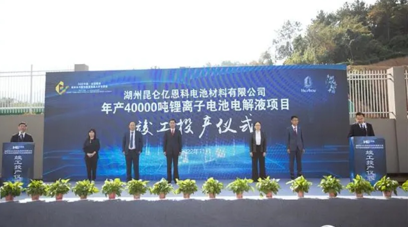 11月5日上午,昆侖材料湖州二期年產(chǎn)4萬(wàn)噸鋰離子電池電解液項(xiàng)目竣工投產(chǎn)儀式順利舉行。