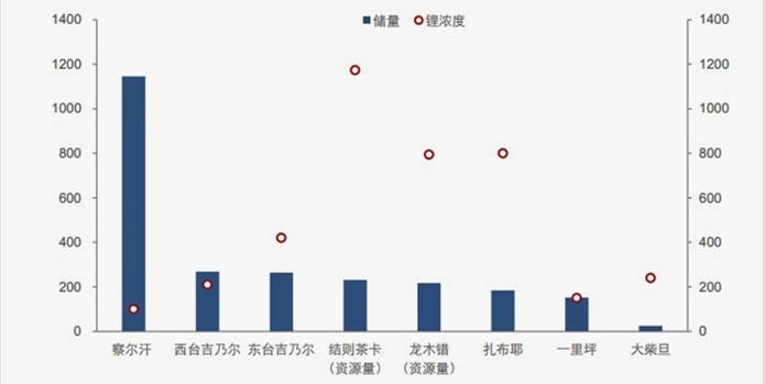西藏與青海主要鹽湖鋰濃度