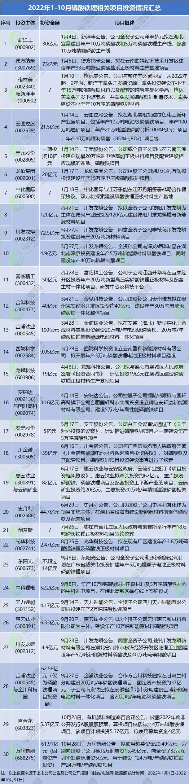 與此同時,云天化、中核鈦白、中銀絨業(yè)、鞍重股份、金浦鈦業(yè)、川發(fā)龍蟒、龍佰集團、司爾特、安納達、西隴科學、安寧股份、惠云鈦業(yè)、史丹利、東陽光、魯北化工等大量的化工及傳統(tǒng)能源領域上市公司也紛紛跨界布局磷酸鐵及磷酸鐵鋰材料賽道。