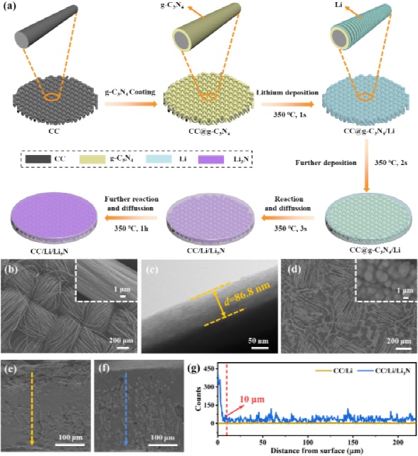 圖1.CC@g-C3N4及CC/Li/Li3N的制備過程示意圖和微觀結(jié)構(gòu)表征