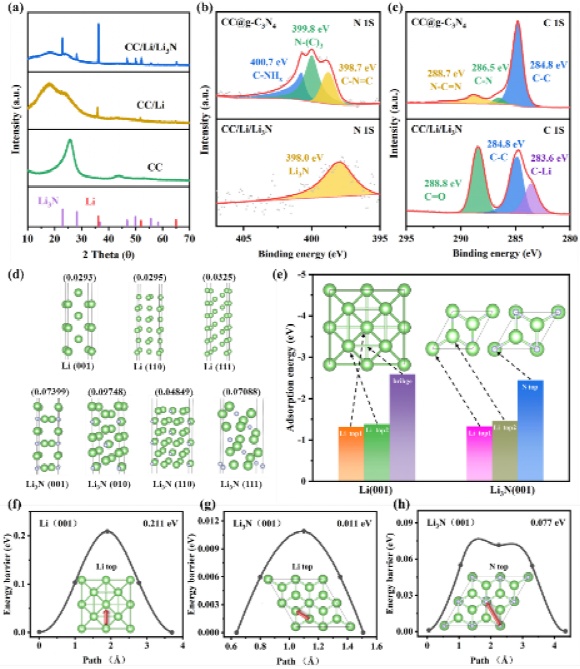 圖2.CC/Li/Li3N的物性表征分析及密度泛函理論計算(DFT)