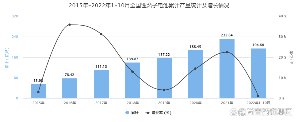 2022年1-10月全國(guó)鋰離子電池累計(jì)產(chǎn)量接近194.7億只