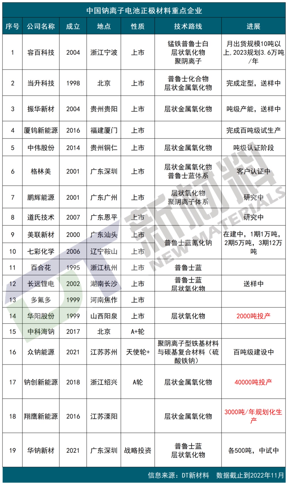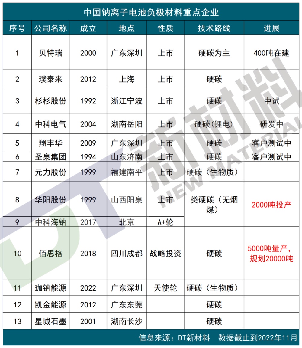 據(jù)統(tǒng)計(jì),目前有15家鈉電企業(yè),13家負(fù)極材料和19家正極材料企業(yè)官宣。另外還有許多宣布聯(lián)合高校進(jìn)軍鈉電池的企業(yè)還在路上,本次未統(tǒng)計(jì)。