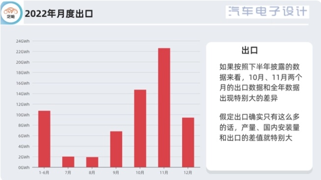 在這里疑問最大的就是這個(gè)出口數(shù)據(jù),我認(rèn)為數(shù)據(jù)是存在漏洞的,至少這么看這個(gè)數(shù)據(jù)不具備可信度。11月單月都有22GWh,Q3的量是10.7GWh,Q4出口了46.7GWh,這樣算下來上半年只有10+GWh的出口。