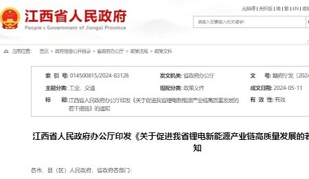江西:支持企業(yè)在國內(nèi)外投資鋰、鈷、鎳等關(guān)鍵資源及冶煉項目