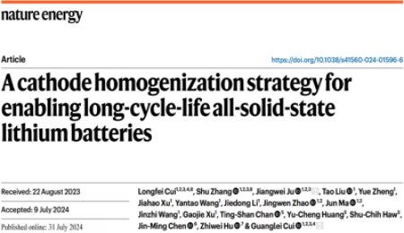 近日,中國科學院青島生物能源與過程研究所崔光磊研究員、鞠江偉副研究員等開創(chuàng)性設計出均質化正極材料,顛覆了全固態(tài)鋰電池復合正極的范式,從根本上解決了與正極非均勻性相關的瓶頸,制備出兼具高能量密度和長循環(huán)壽命的全固態(tài)鋰電池。相關研究成果以“A cathode homogenization strateg...